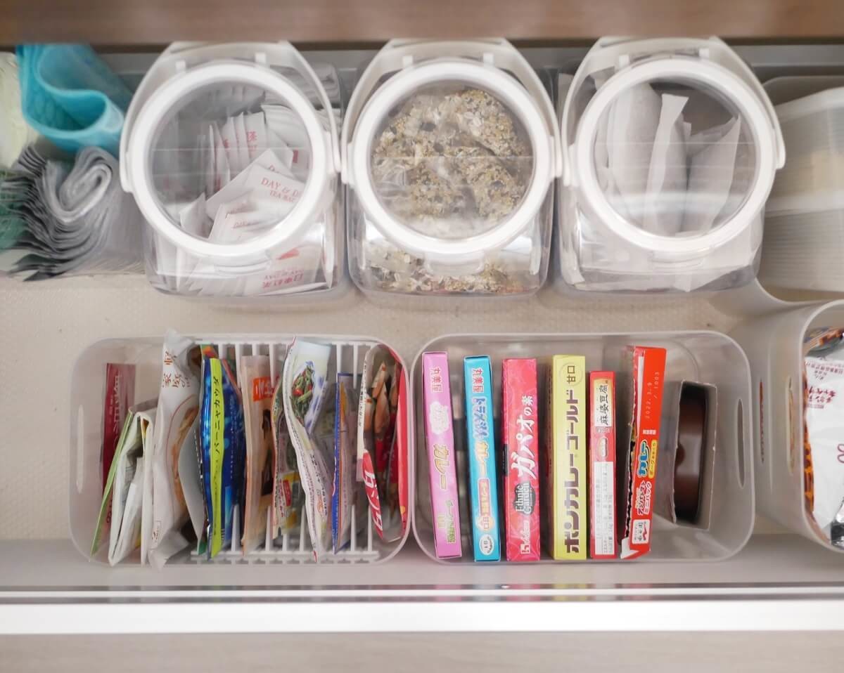 少量になっている小袋たちは、したに隠れがちだったのですが、しっかりと自立してくれるので賞味期限がいつの間にかキレてる!ってことがなくなりました。