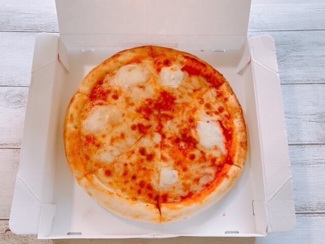 ピザは冷たくなってしまうと固くなってしまい、チーズもトロっとしないので、テイクアウト後少し時間がたってしまったわが家は少し温め直してからいただきました。