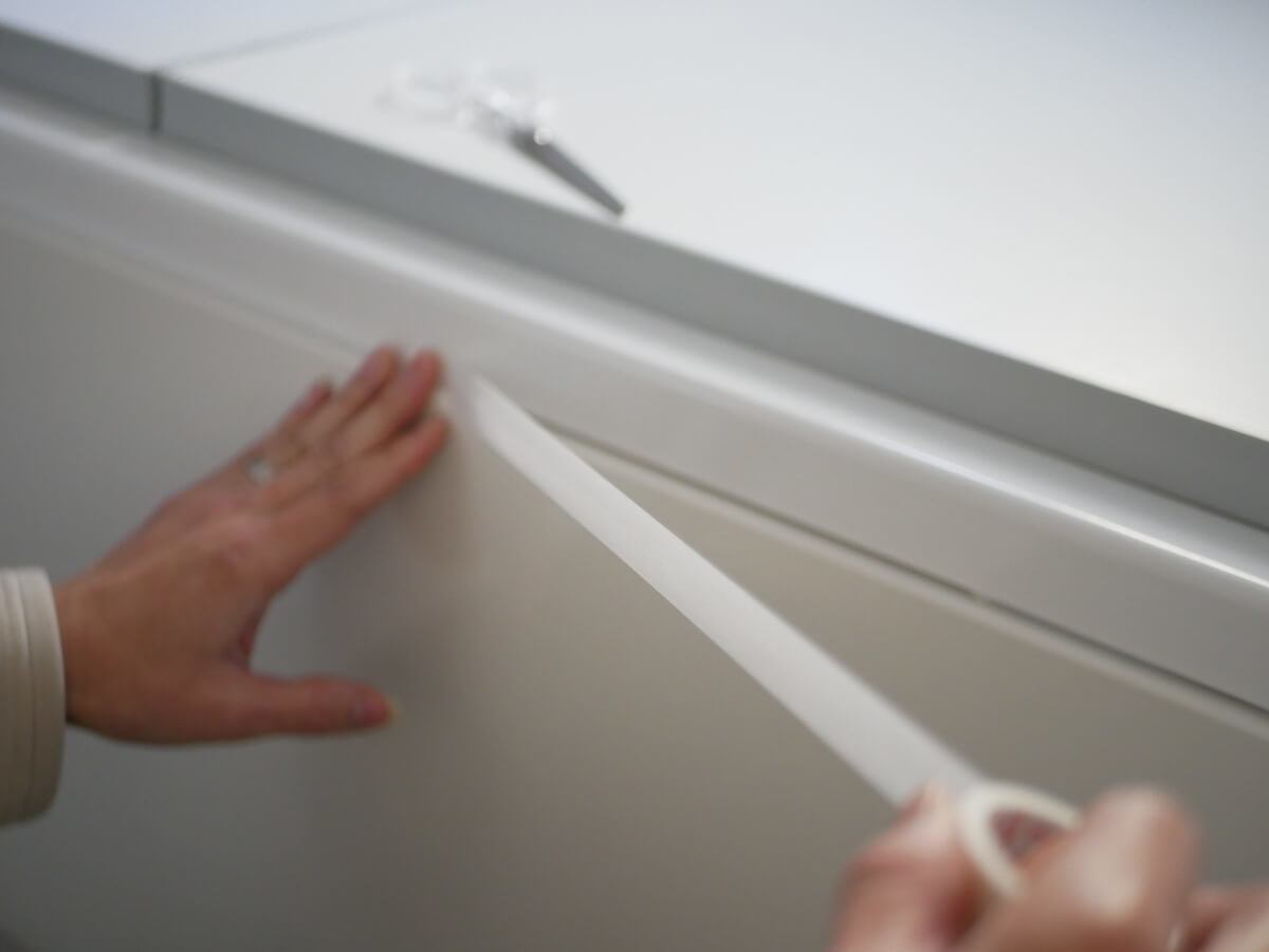 数ヶ月に一回、予防掃除をする手間はありますが、汚れを洗剤でゴシゴシするよりも、綺麗な部分にテープを貼る方が気分も良いですよね!?