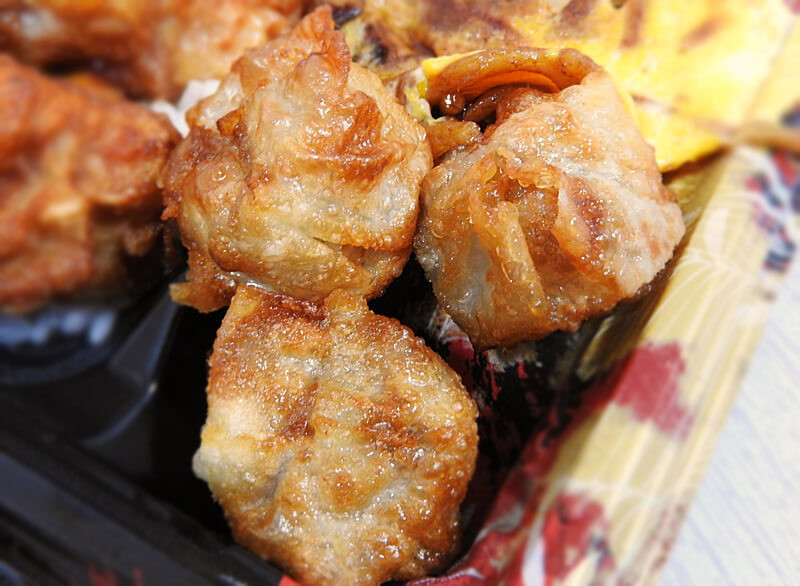 率直な感想をお伝えすると、雑味のないしゅうまいですね。つなぎ感のある肉がつまっていました。揚げしゅうまいというよりも、表面がくしゅっとしている小さなメンチカツっぽいような……?