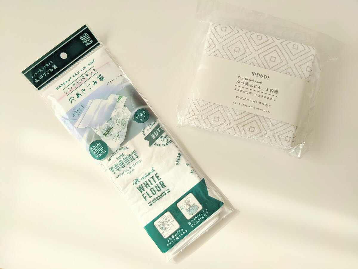 今回はスリーコインズのおすすめキッチングッズを2点紹介しました。 かや織ふきんは薄くて乾きやすく、5枚も入っているのでガンガン使えるのが嬉しいです。