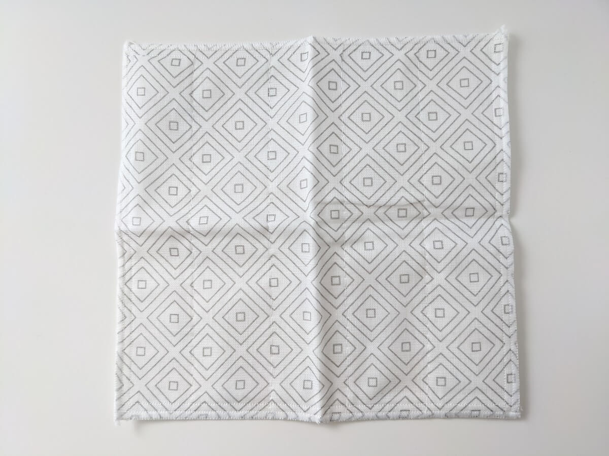 こちらは生地を織る際に糊付けされているので、はじめて使う場合は手洗いで糊を落とします。 8枚重ねで織ってあるため、丈夫でしっかりしていて吸水性も抜群。