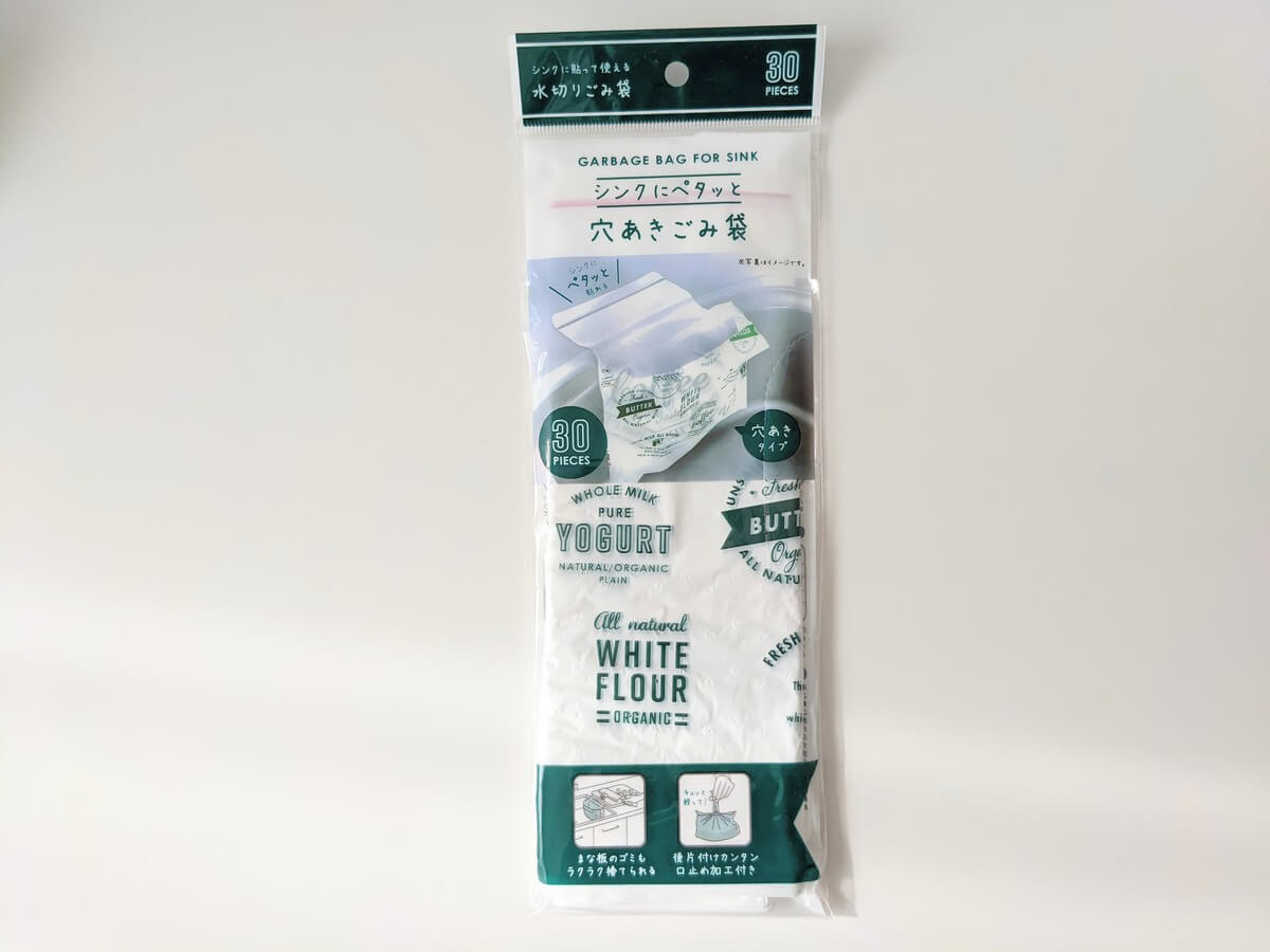 - スリーコインズ「シンクにペタッと穴あきゴミ袋 30枚入り」330円(税込)
