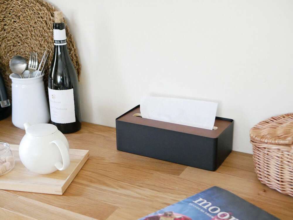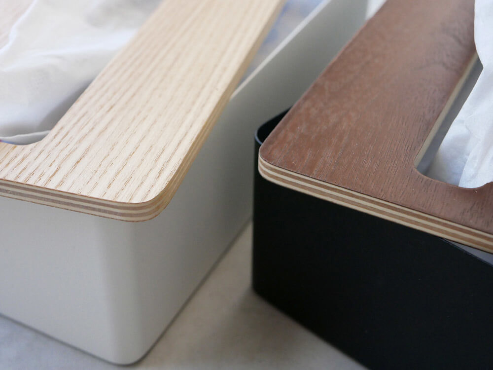 明るく清潔感のある「ホワイト」かシックモダンが叶う「ブラック」か迷ってしまうティッシュケースで、いつもの日用品を素敵にドレスアップさせてみてくださいね。