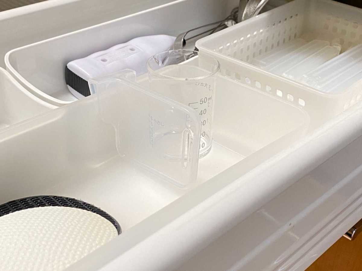 この小さなメジャーカップが引き出しを開ける度に転がってストレスだったのですが、仕切りをはめただけで即解決!!