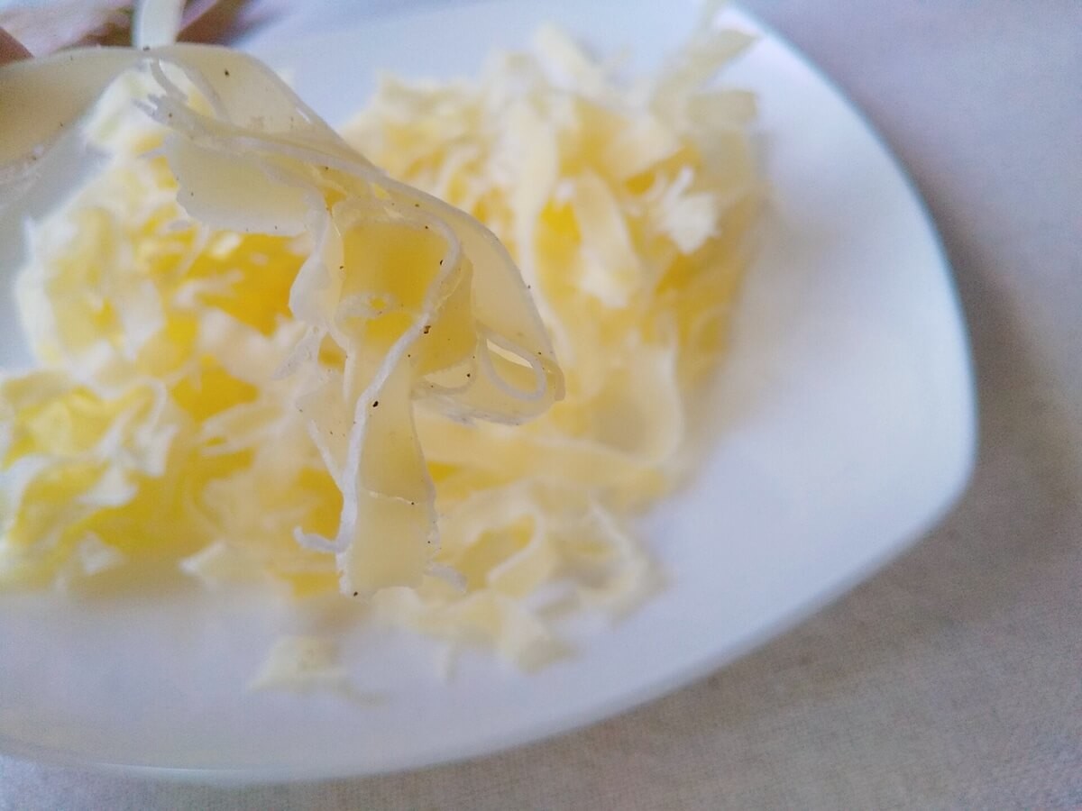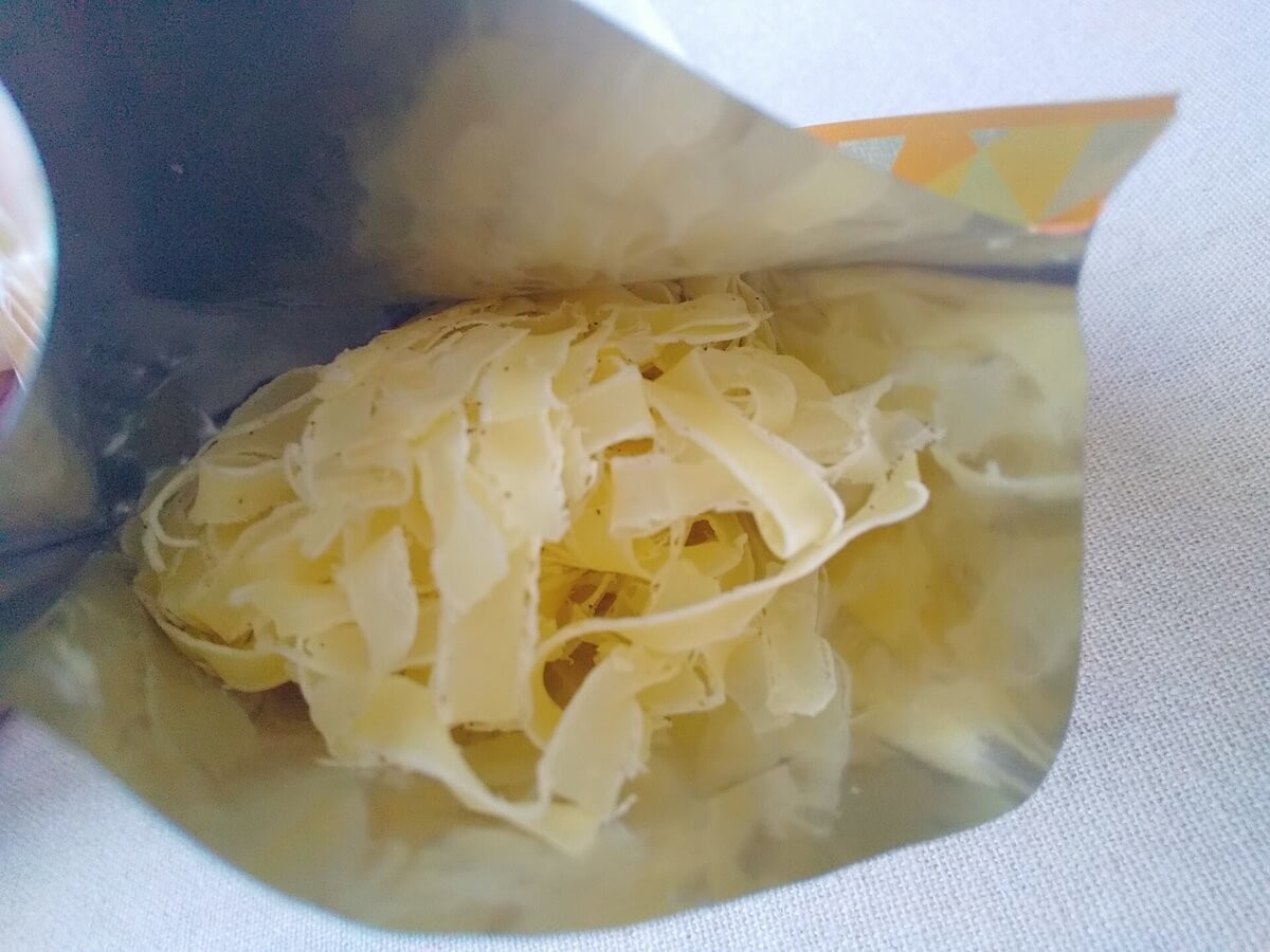 チーズは薄くスライスされ、商品名のとおり“ふわっふわ”!なんだか鰹の削り節みたいですよね。