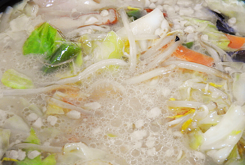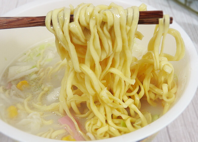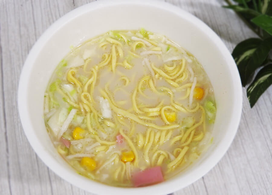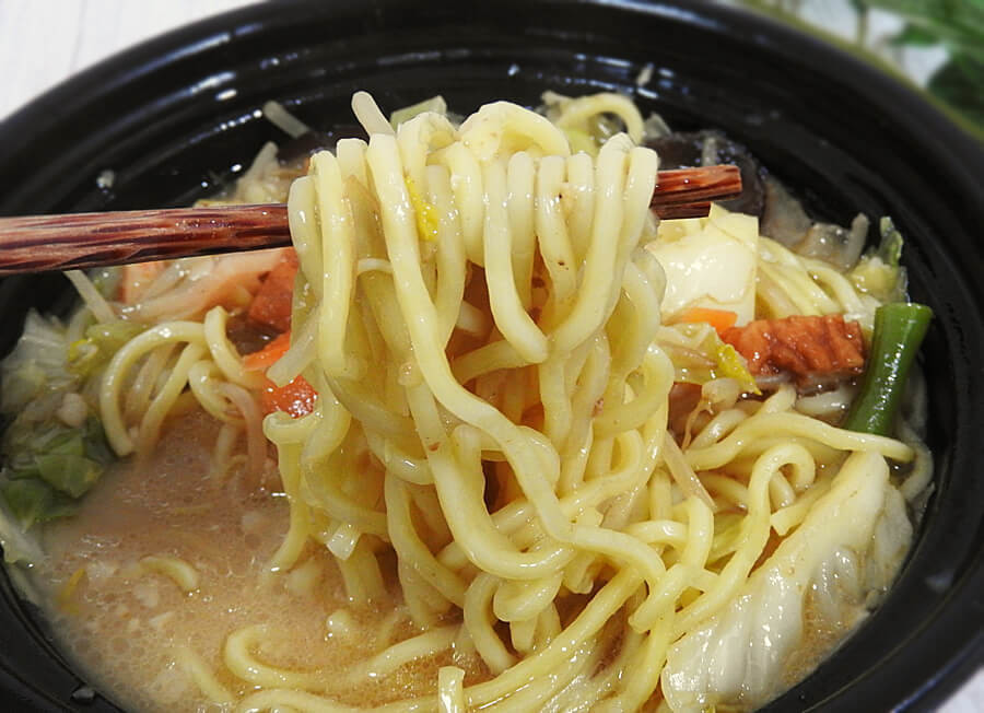 ただし、スープの白っぽさやかまぼこやコーンなどちゃんぽんらしさを表現していて、雰囲気は出ています。糖質を控えている人にとっては、なんとなくの雰囲気が出て良いと思いますが、積極的に買いたいとは思いませんでしたね。