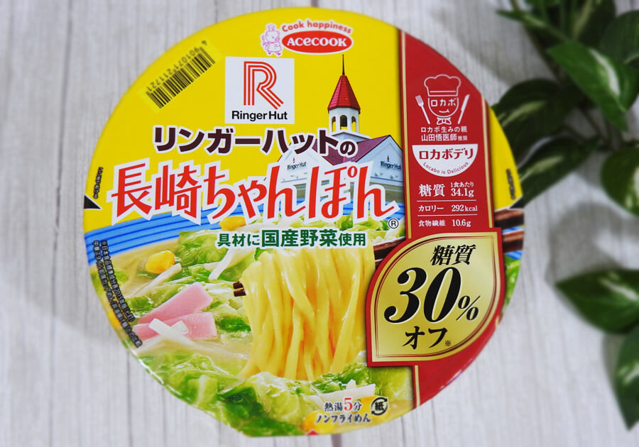 リンガーハットではなく、イオンの食品コーナーに置いてあったリンガーハットのカップ麺「ロカボデリ リンガーハットの長崎ちゃんぽん糖質オフ」目に入ったので、買ってみました。