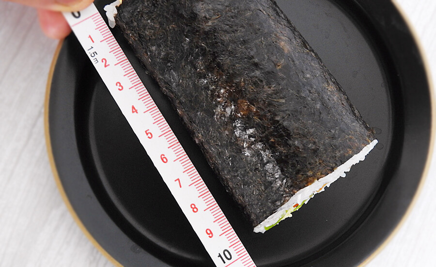 ハーフサイズの長さを手持ちのメジャーで測ってみたところ、約9.5cmでした。1人で食べる分には、ハーフサイズでも良さそうです。