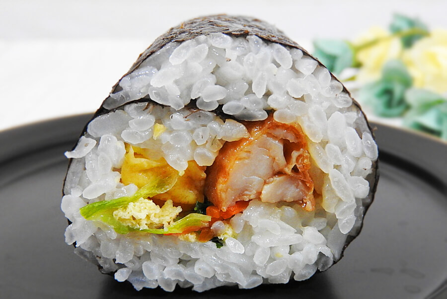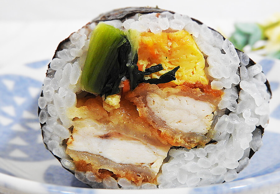 甘酢ソースがかかったチキン南蛮やだし巻玉子、桜でんぶ、小松菜と油揚げの和え物が入っており、タルタルソースも絡められています。タルタルソースはあくまでもおまけ程度で、甘酢ソースっぽさが前面に出ていました。ちょっとジャンキーな恵方巻ですが、これはこれでアリですね!