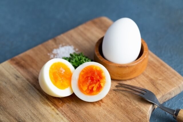 卵は、生のままご飯にかけたり、スクランブルエッグやオムレツにしたりなど、色々な食べ方ができる食品です。その中でも固くゆでた卵は、卵のたんぱく質がぎゅっと密に固まるため、食べ応えがあり、1個食べただけでもしっかりと満腹感を得ることができる、腹持ちの良い食品です。