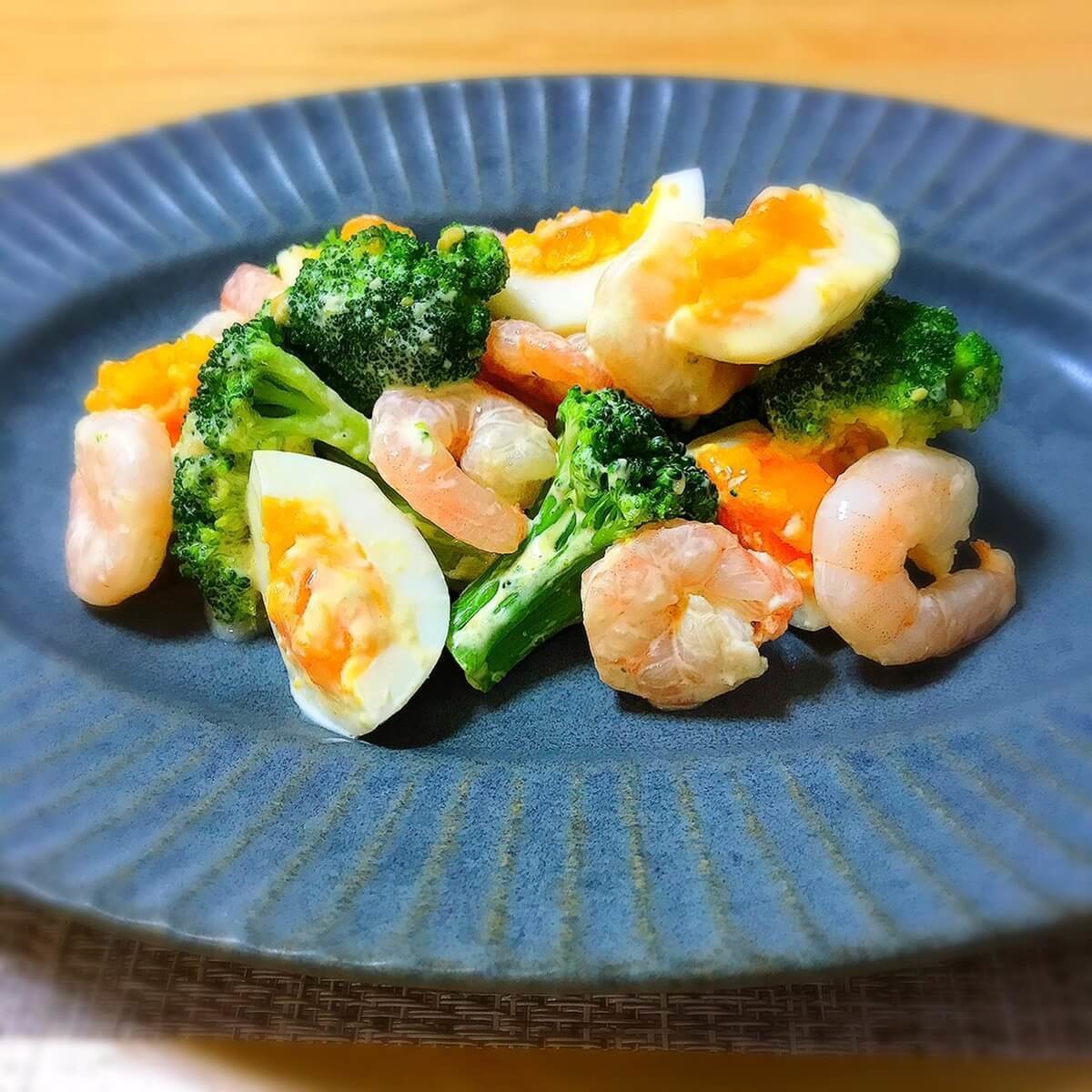 3.たんぱく質不足を防止!ゆで卵と海老の味噌マヨサラダ