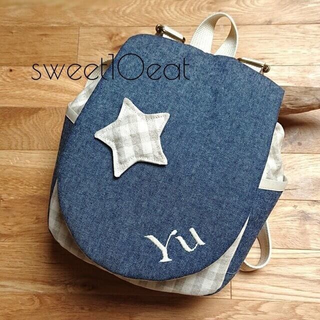 最後にご紹介するのは、子どもの名前を入れられるベビーリュック!星のブローチは取り外しが可能で、好きな位置に変更可能です。