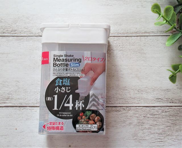 ダイソーのひとふり計量ボトルを使えば、今まで通りのスボラな使い方でも、計量した状態で使えて超便利!