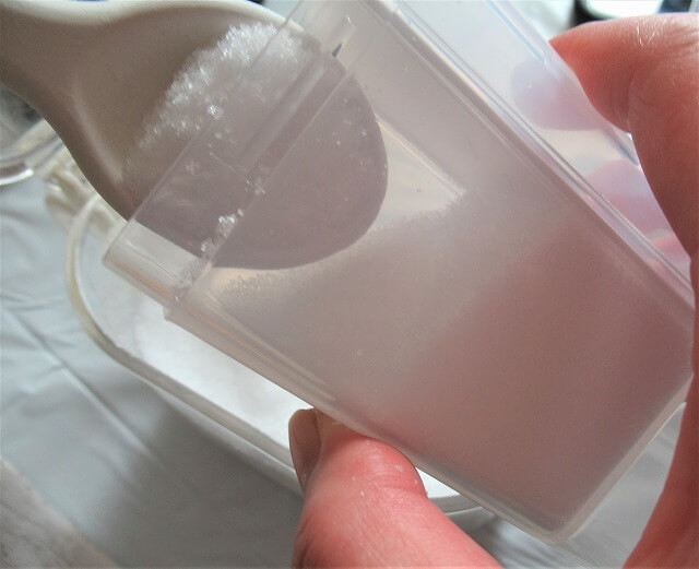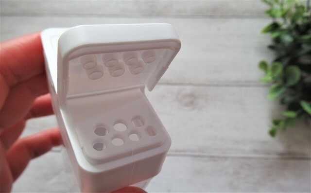 また、塩が固まってしまうと計量ができない場合があるので、ダイソーに売っている小さい珪藻土などを入れておくのも手かと思います。