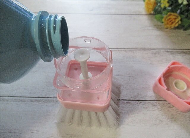 まずは、フタを外して台所用洗剤を入れます。