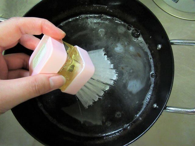 油の処理をした後の天ぷら鍋を洗ってみました。