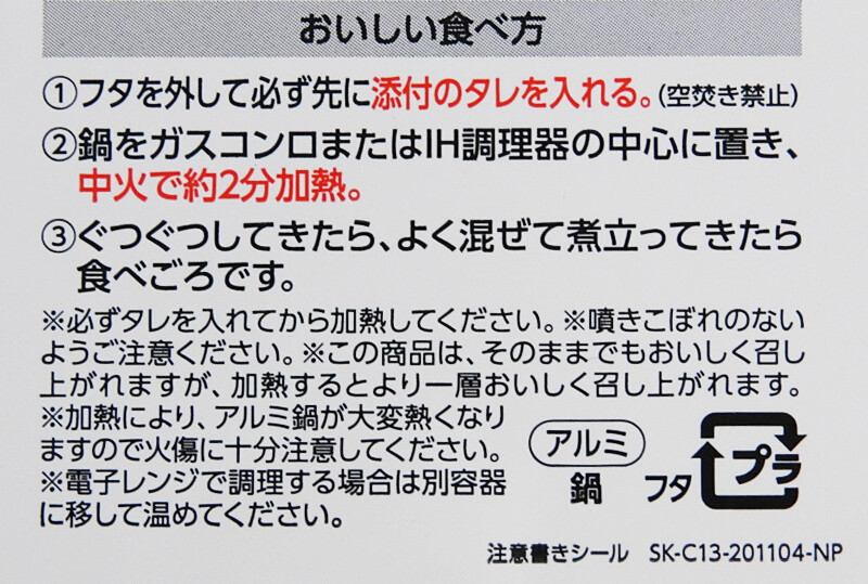 - ふたをはずして添付のソースを具材が入っている鍋に入れる