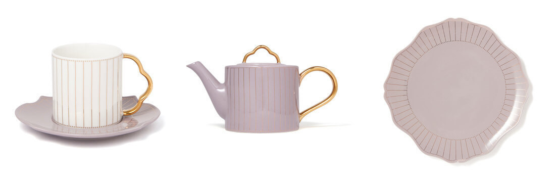 ※左から カップ&ソーサー:1,400円 / ティーポット:2,200円 / プレートM:1,200円
