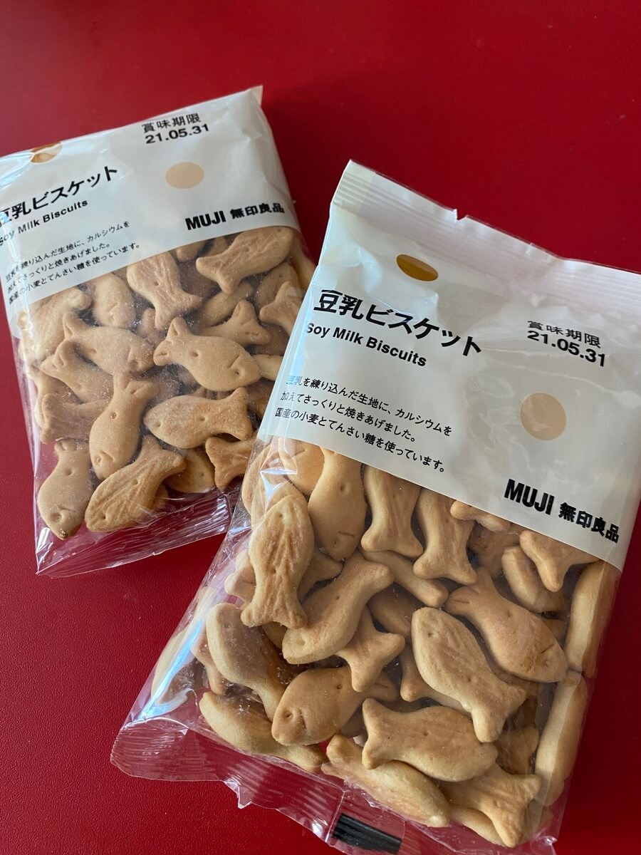 見た目が可愛すぎる魚の形のビスケット。 豆乳は普段から飲んでいるので、抵抗なく購入しました。 ほんのり甘い味わいです。