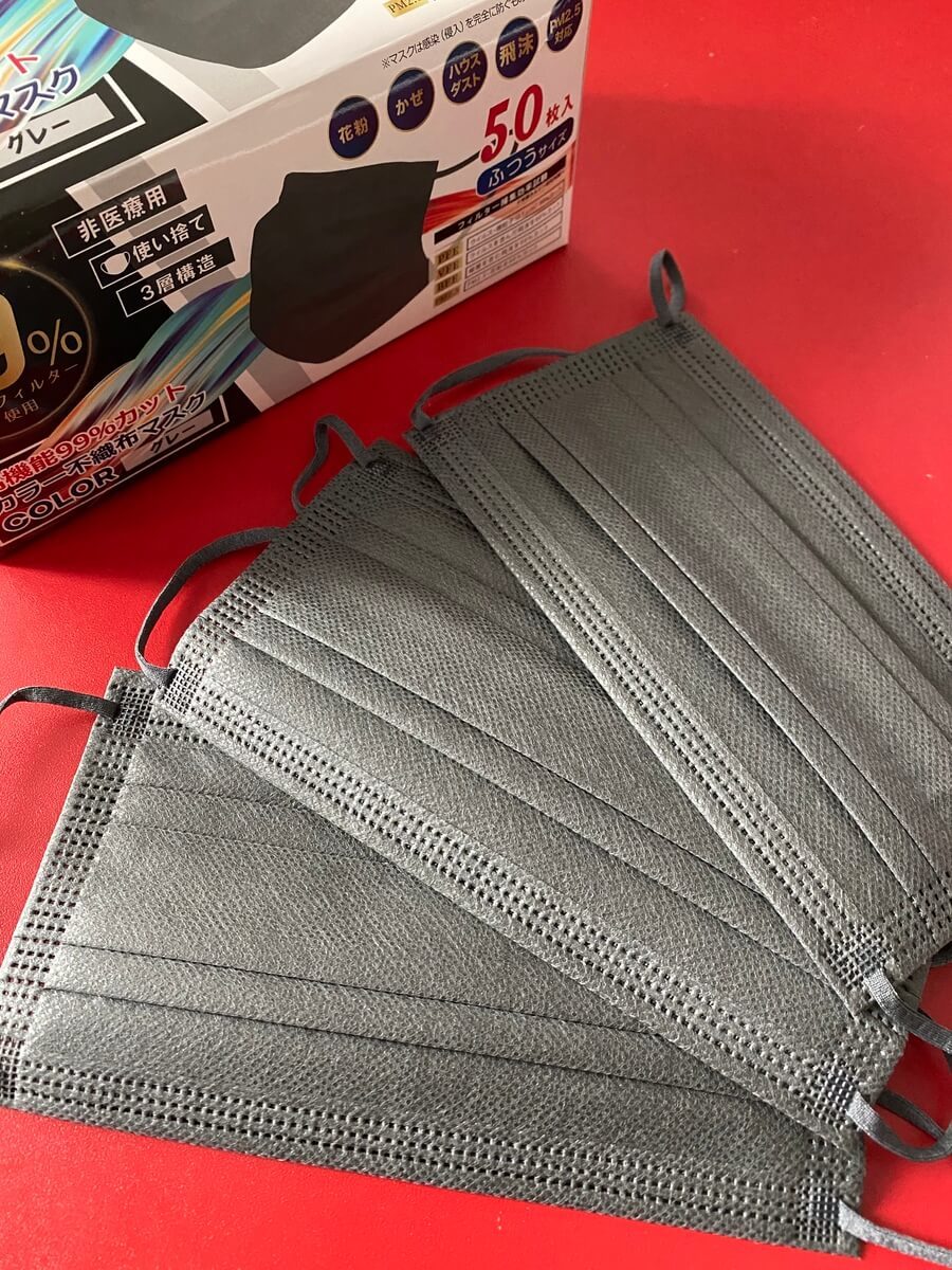 実は、このマスク気に入りすぎて、グレーは6箱もストックしています。 ブラックは2箱。笑。