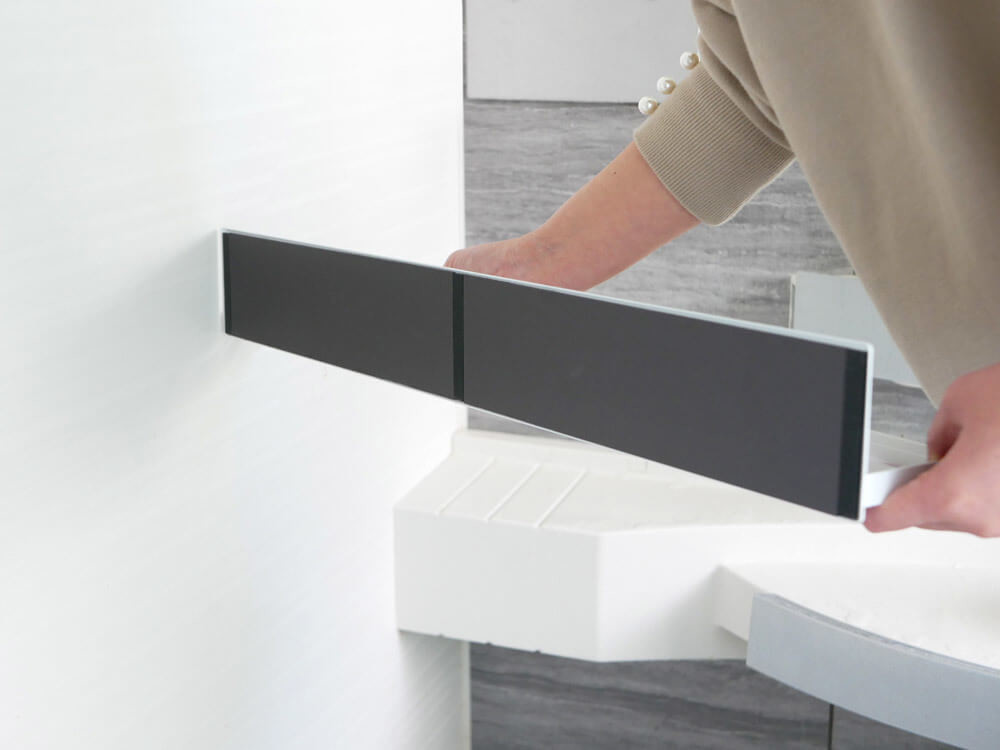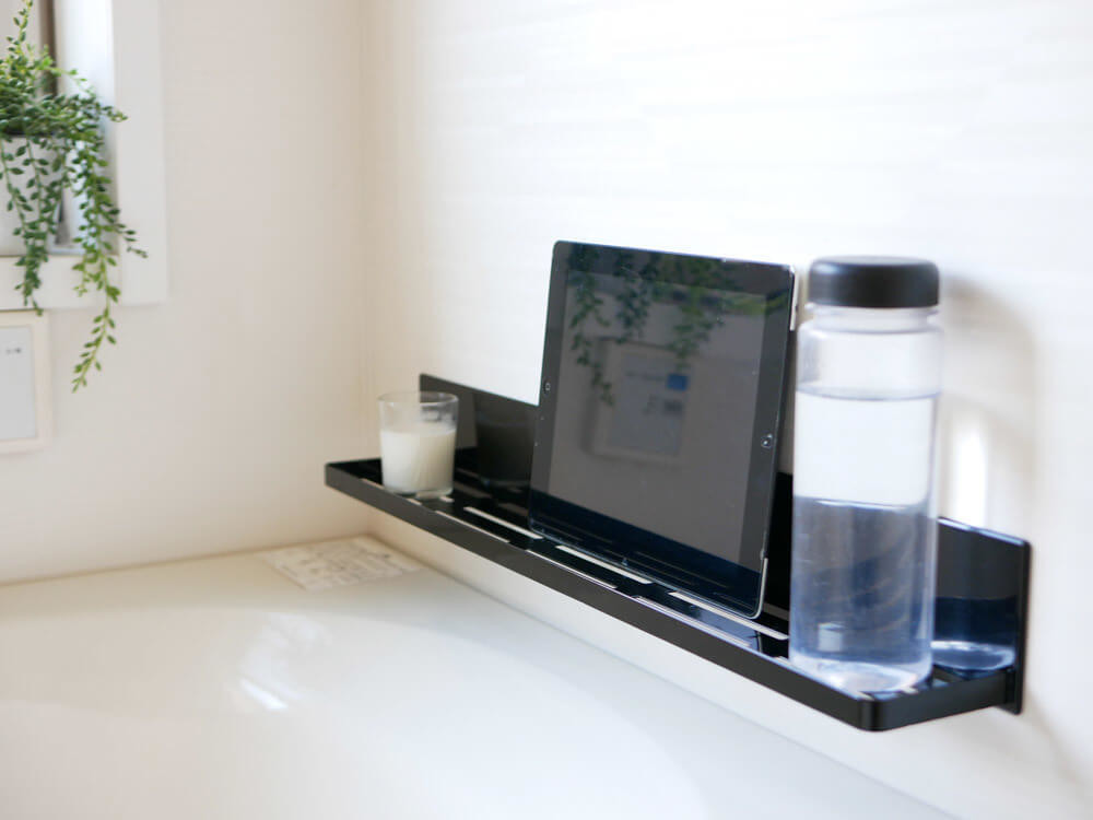 バスタブの近くに付ければ、防水タブレットやドリンクなどを置いて極上のリラックスエリアに。