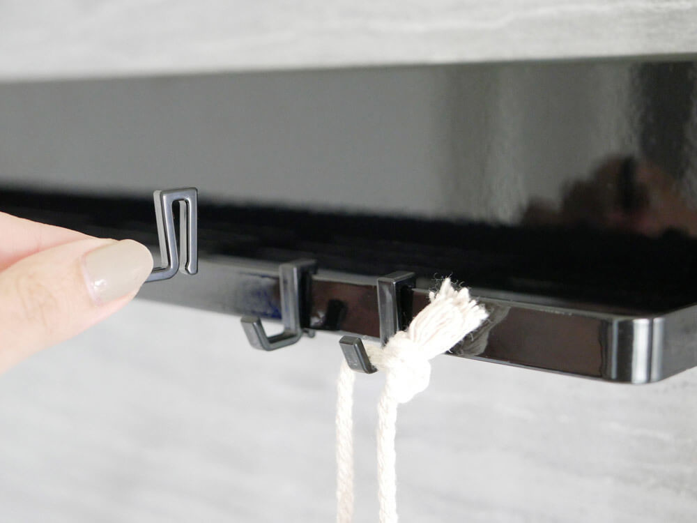 取り外しが可能なフックが3個付属しているので、用途に合わせてお好きな場所に取り付けてご使用ください。