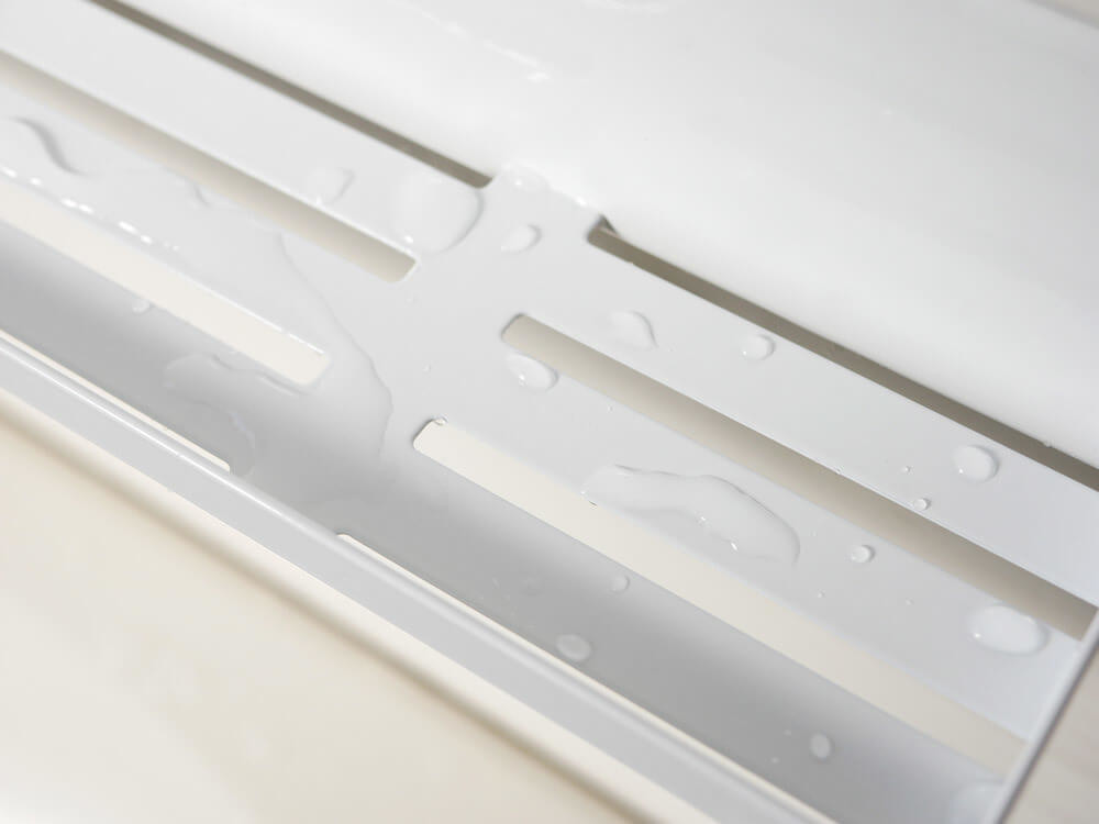 素材は、水周りでも安心で丈夫なスチール製。ユニクロメッキ+粉体塗装が施されていてさびにくいのが特徴です。