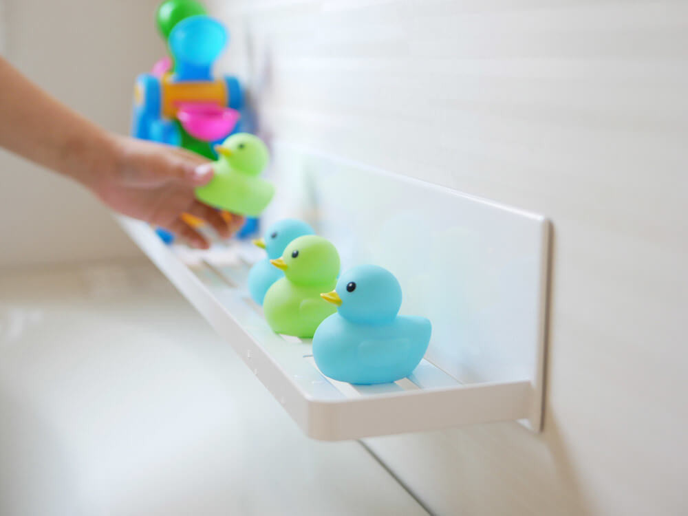 バスグッズの他にも玩具や防水タブレットやボトルなどの快適グッズなどを置けるので、とりあえず付けておけば何かと便利なんです。