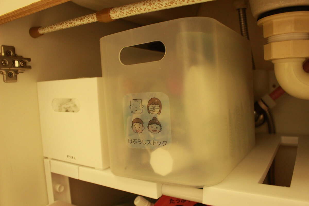 扉を開いてすぐに見つかるので「新しい歯ブラシ欲しい。どこ?」と聞かれることがなくなり、ママのイライラが減りました。