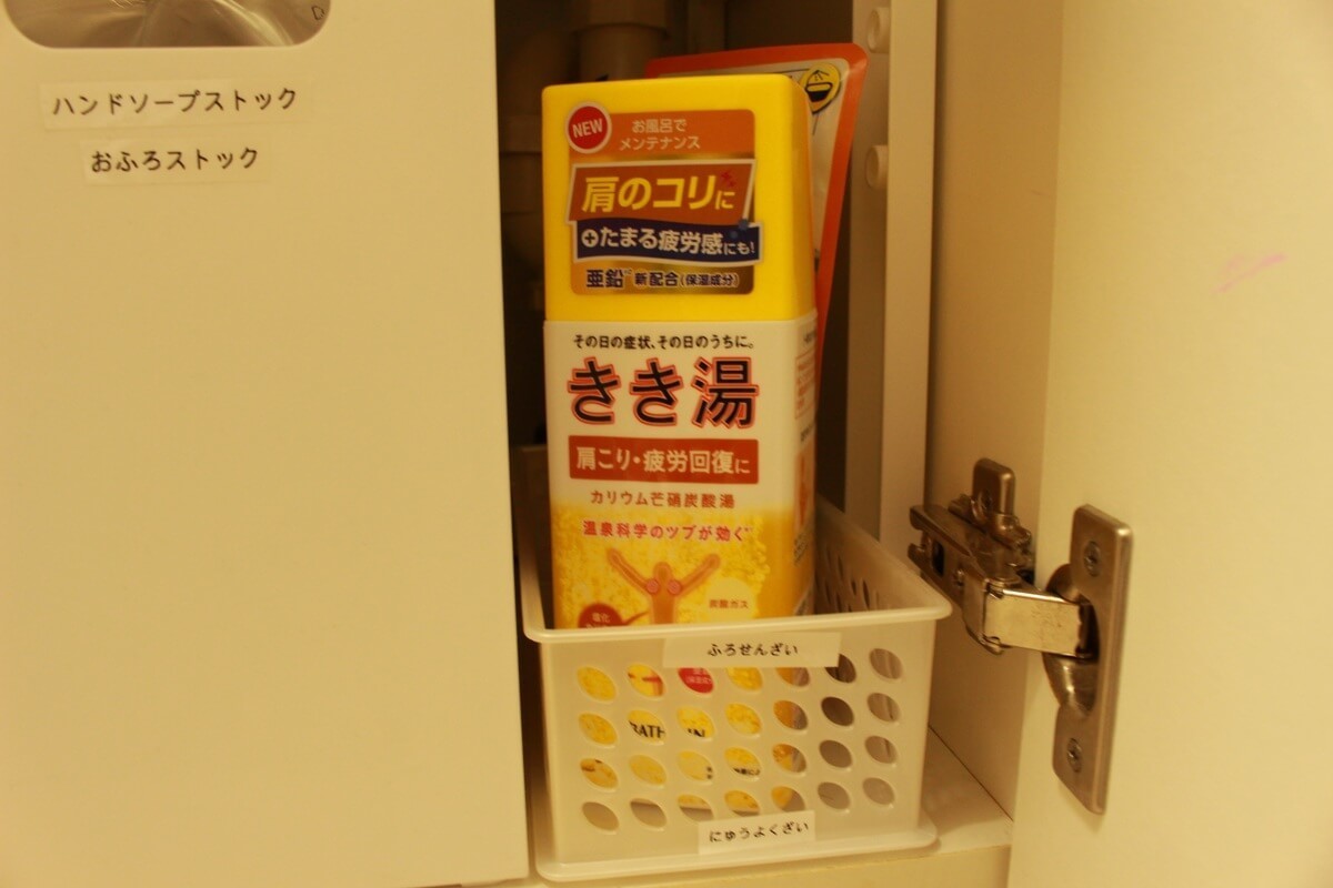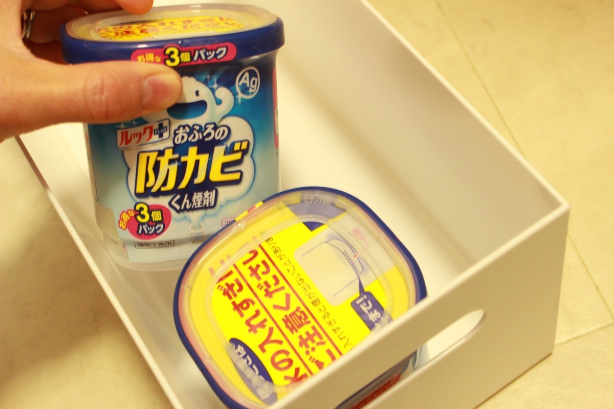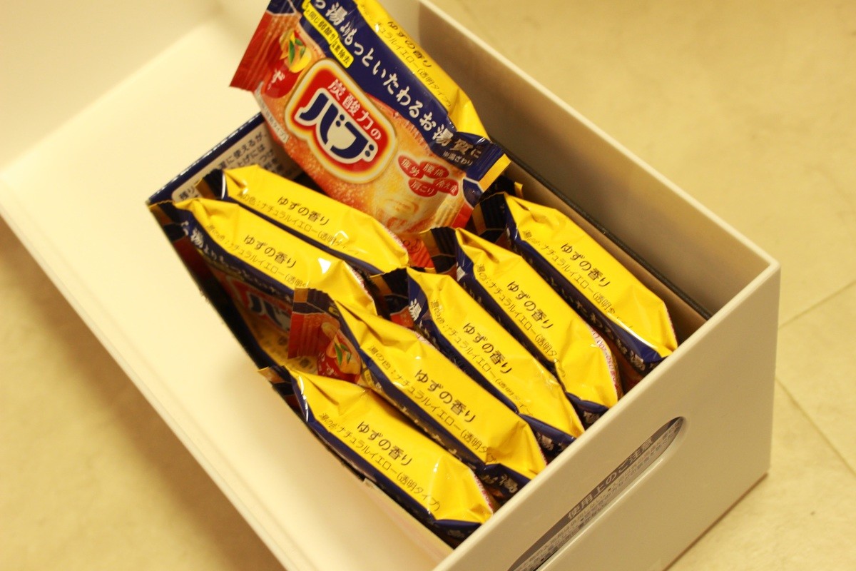 手持ちのダイソーのケースがぴったりだったので、入浴剤を置きました。