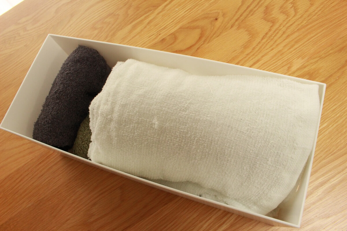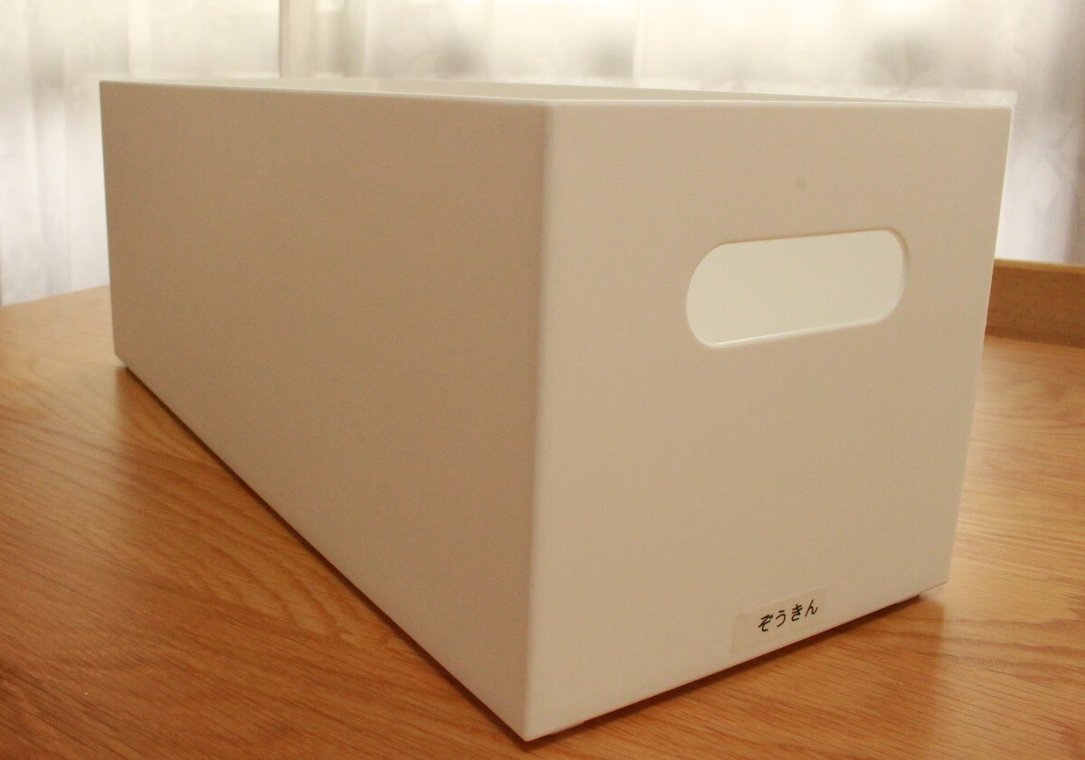 我が家では、学校に持っていく雑巾のストック入れにしています。