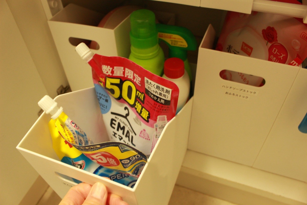 幅13cmは、洗濯洗剤のストックにピッタリ。