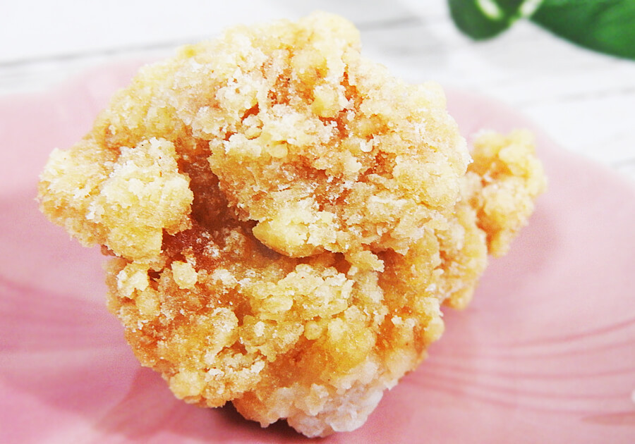 茶色いからあげが「新からあげ」で、下の方に見えている白っぽいからあげは「竜田あげ」。両者共に大きさは同じくらいでした。