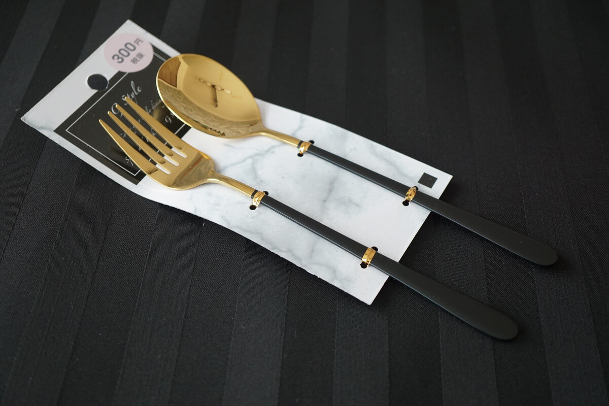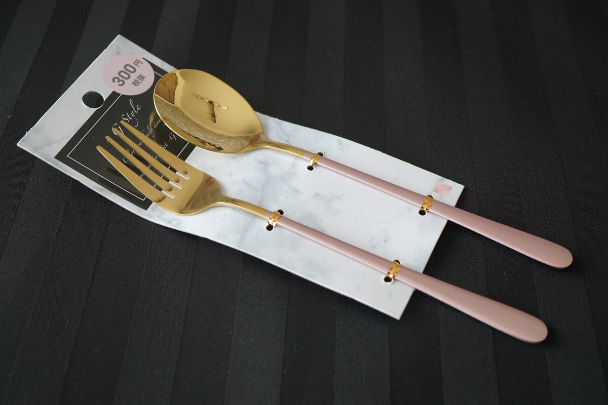 スプーン&フォークセットで300円には絶対に見えない!と言っても過言ではないほどの高見えカトラリーです。
