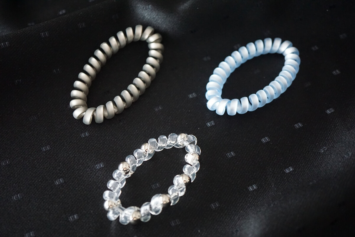 こちらのヘアアクセは髪を結んだときにあとが残りにくいことと、髪が引っ張られている感じがあまりしないのでとても気に入っています。