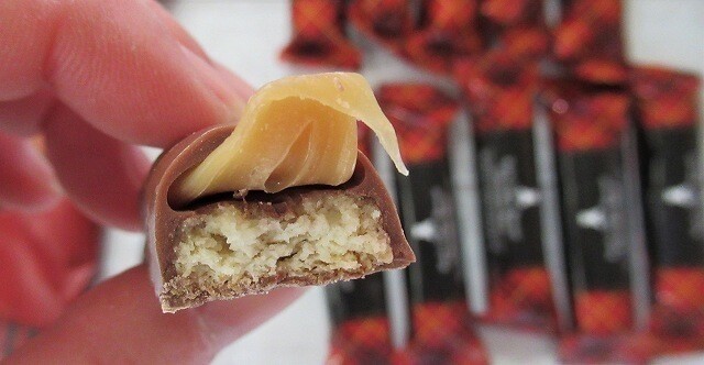 食べてみるとキャラメルが最後まで口の中に残り、ビスケットチョコとキャラメルを別々に食べているようで2度楽しめちゃいます。