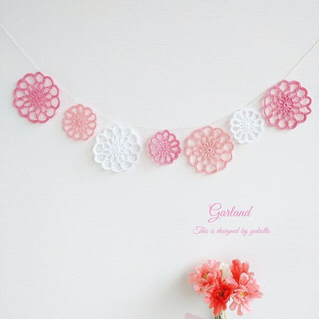 ピンク、ベビーピンク、ホワイトの3色が女心をくすぐる、コットンレース製のガーランドです。コットンなので柔らかい質感がとっても可愛いらしい作品です。ベーシックに横に飾るのもいいですが、縦に飾ってもおしゃれですよ!