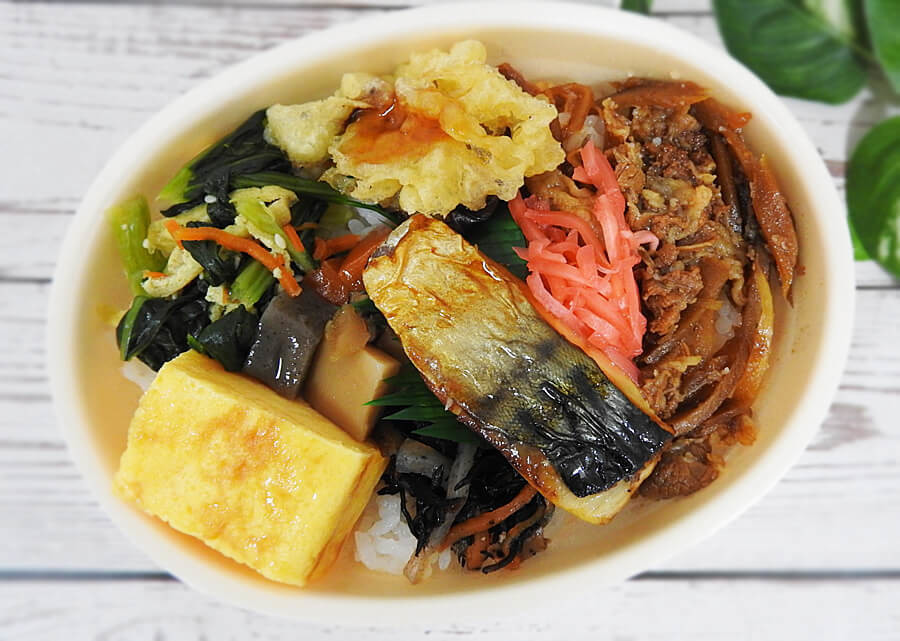 ごはんがほとんど見えないほど、しっかりとのったおかずたち。見た目も鮮やかで少しテンションがあがりました。
