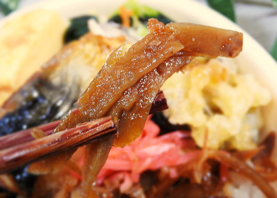 鯖の皮がパリッとしていたので、私は皮ごと食べられました。お魚メインのお弁当を食べる時にネックとなるのが、小骨や皮の処理……。しかし「彩・牛しぐれ煮弁当」は、小骨や皮の処理の手間がはぶけて個人的には助かりました。