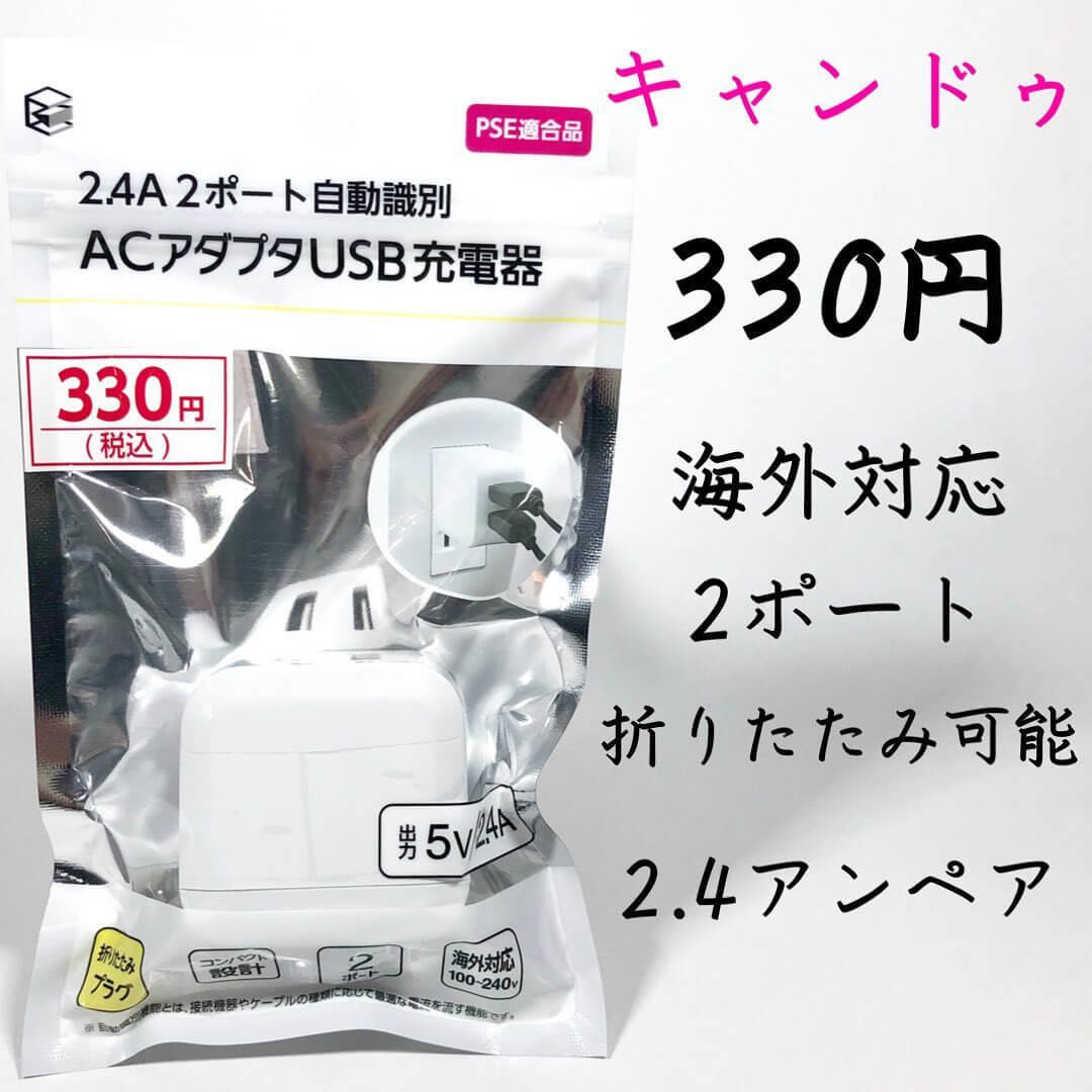 キャンドゥなら差込口が2つついて200円!しかも海外対応なので、いずれは海外旅行にも持っていけますよ♪