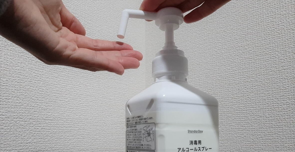使い方は簡単。ボトルをワンプッシュするだけで適量の消毒用アルコールがでてきます。