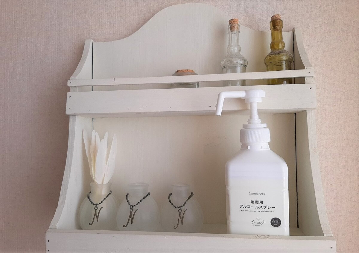 洗面所までにリビングを通るので、今までは手洗いまでにドアノブなどを触ってしまうのが気になっていましたが 玄関で一度消毒することで解決。