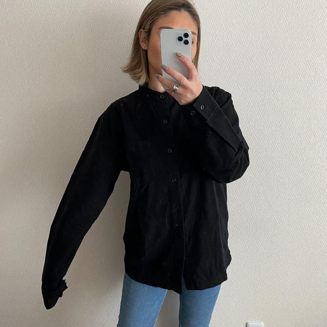 どんなボトムスともマッチして抜群の着回し力を誇る、黒タイプのフランネルシャツ。