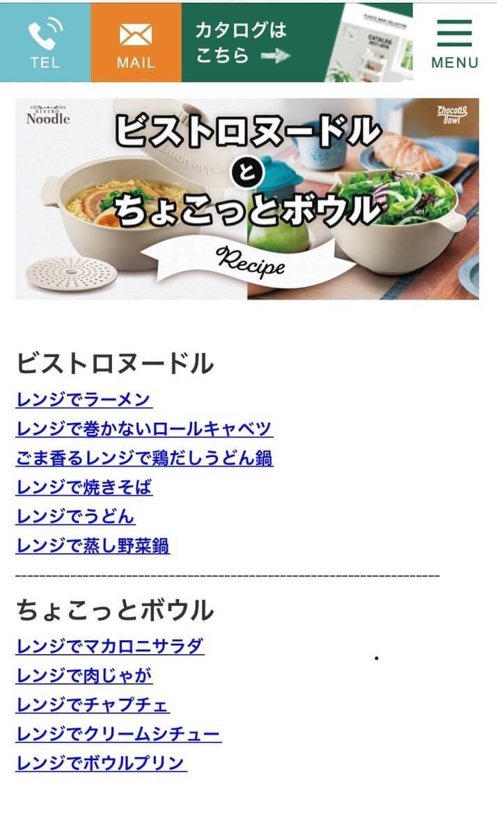さっそくサイトへ飛んでみると、「ビストロヌードル」と同じく新商品の「ちょこっとボウル」のレシピが掲載されています。