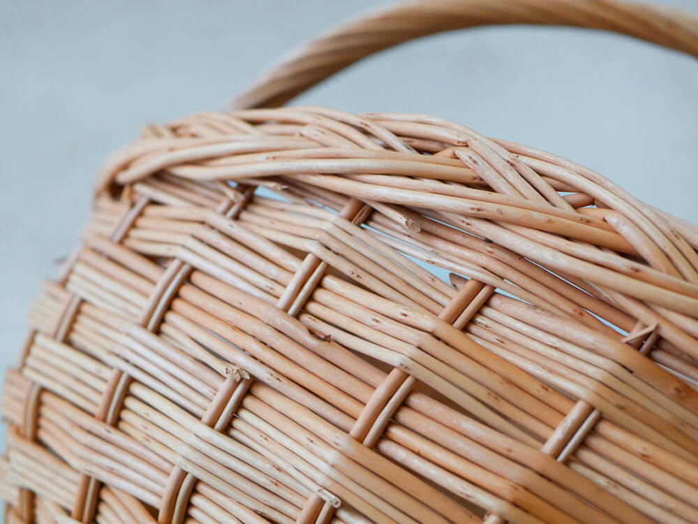 柳の枝の皮をはいで乾燥させたヨーロッパでは代表的なかごの素材です。しなやかさと通気性がありとても軽いのが特徴です。