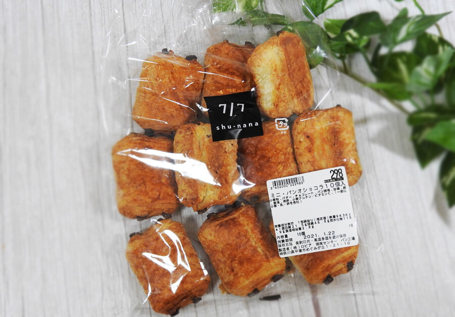 それが、こちらのロピア「ミニパン・オ・ショコラ」298円(税抜)。ひとくちサイズのパンが10個入っています。1個あたり29.8円と安価なパンですね。