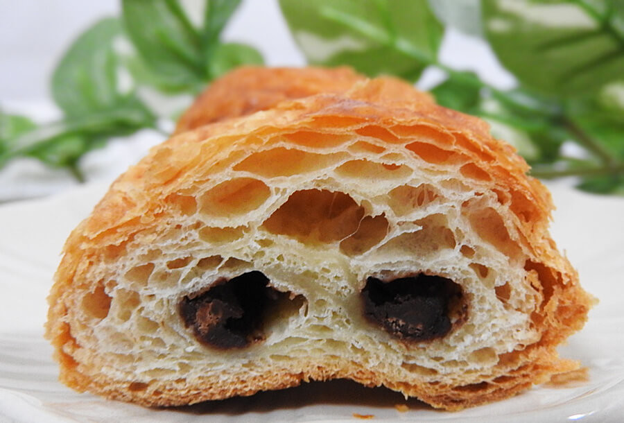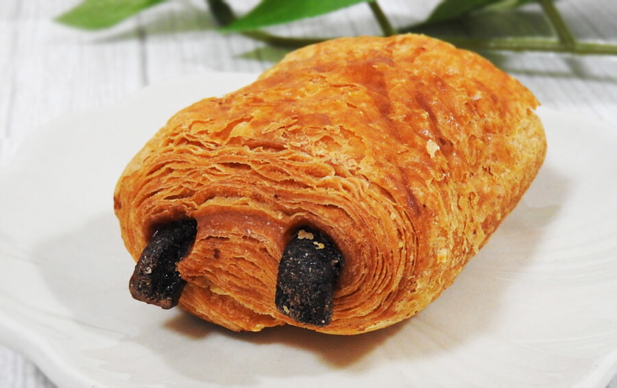 デニッシュ生地からはみ出したチョコ2本は、子どもが布団から足を出したまま寝ているみたいでかわいい……と私は密かに思ってます。