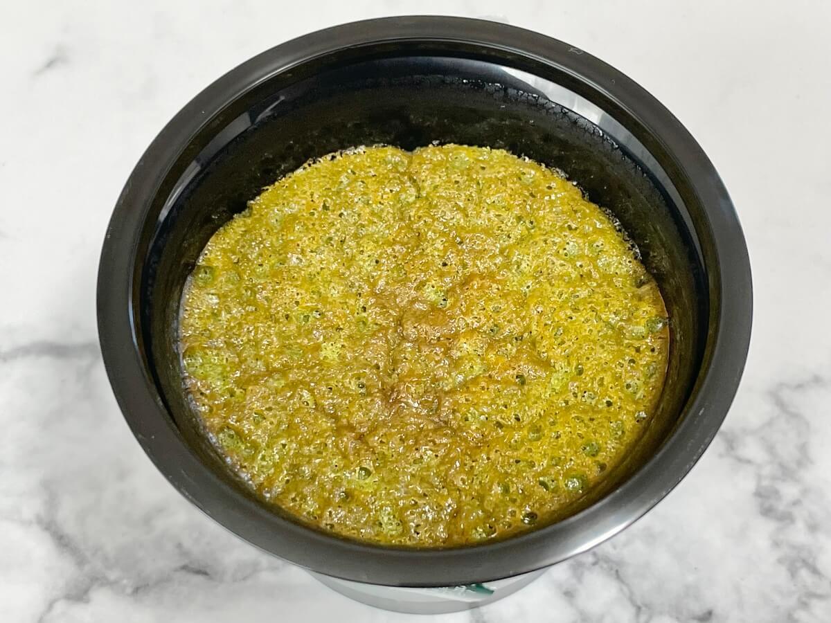 優しく押さないと、プラスチックスプーンが折れてしまいそうなくらい、みっちりとしています。