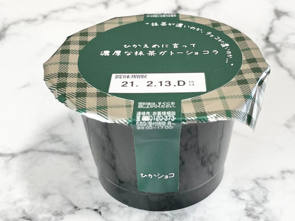 セブンイレブンに新商品パトロールに行くと、ヨーグルトコーナーのとなりでひかえめに陳列されている「ひかえめに言って濃厚な抹茶ガトーショコラ」を発見。